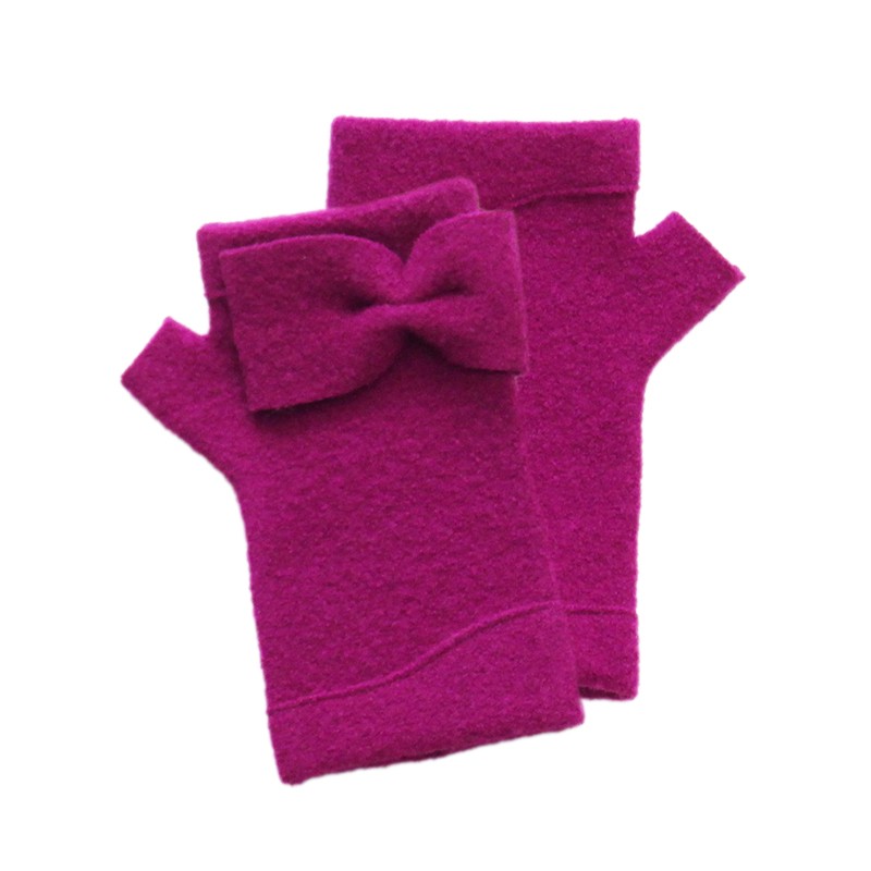 Boiled wool fingerless gloves with the 'FIOCO' design