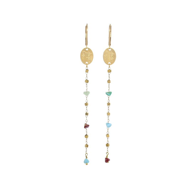 Bijou réalisé à la main en Belgique en laiton ou acier recouvert d'or fin ou d'argent. Evitez le contact avec parfums, cosmétiques, produits agressifs et humidité. A conserver dans l'étui.